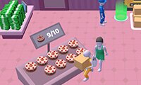 Run to the delivery area to pick up the items dropped off by the truck. Then, carry everything to the empty shelves to stock up your store. Customers will automatically enter the shop and buy items. Run by the till to collect your earnings.